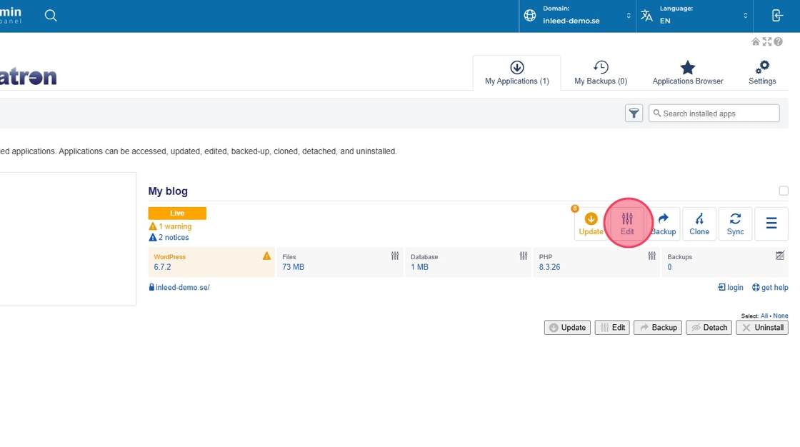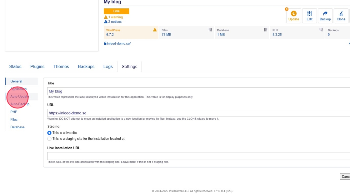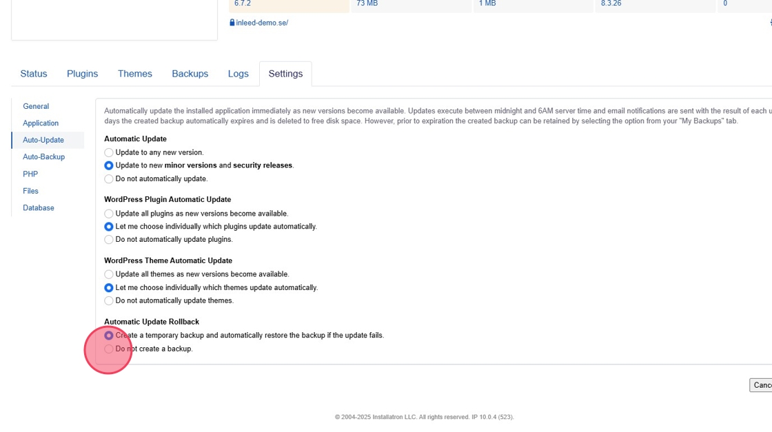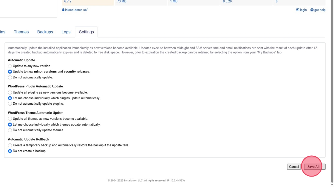 Den här guiden visar hur du stänger av automatiska backuper för applikationer installerade via Installatron i DirectAdmin.