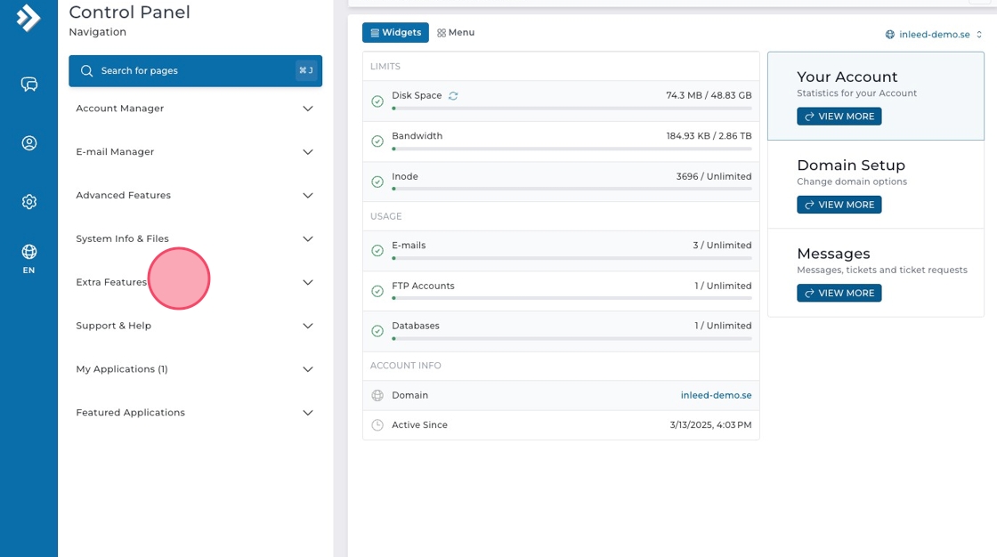 Logga in på DirectAdmin. Är du osäker på hur, se denna guide.