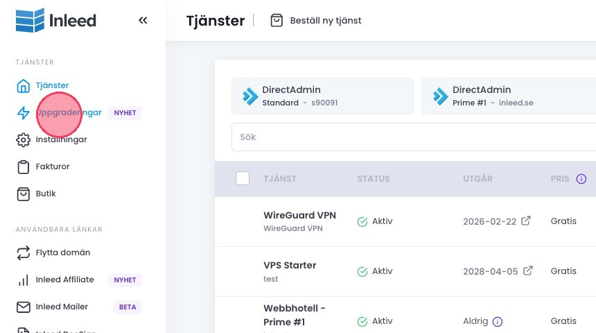 2Klicka på "Uppgraderingar" i menyn.