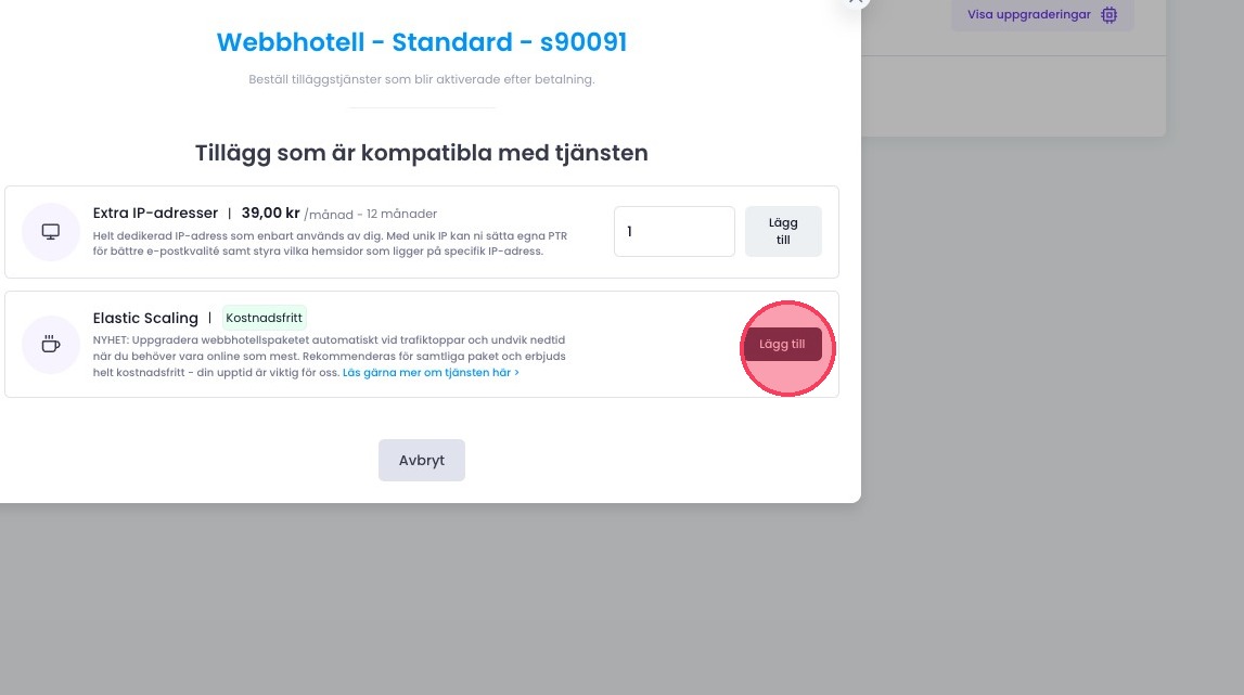 4Klicka på "Lägg till" vid Elastic Scaling för att aktivera tjänsten.