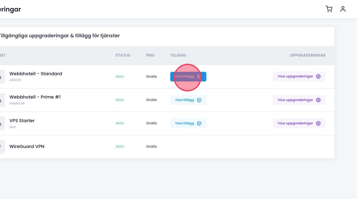 3Klicka på "Visa tillägg" för att se tillgängliga tilläggstjänster.