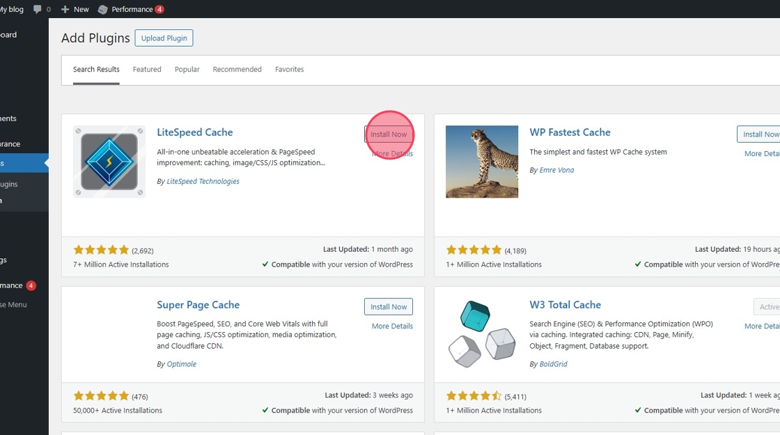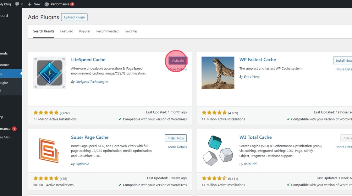 Installera och aktivera LiteSpeed Cache-plugin i WordPress