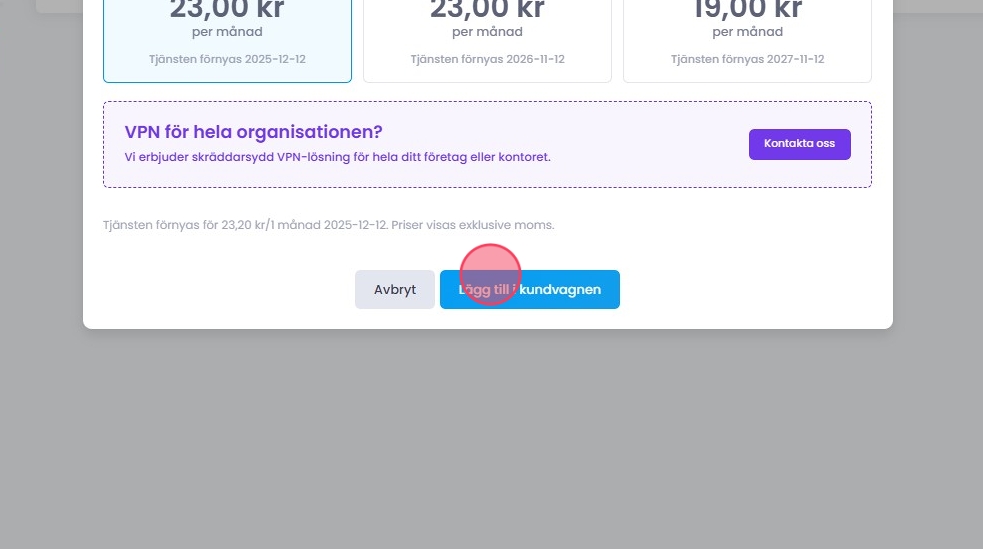 Välj önskad periodisering (t.ex. månadsvis eller årsvis) och klicka på "Lägg till i kundvagnen".