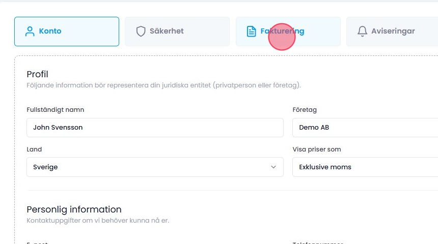 3Klicka på "Fakturering".