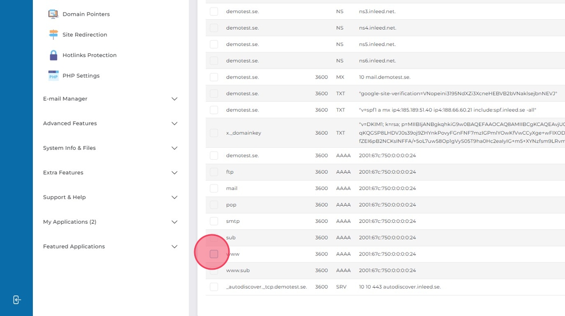 Gör samma sak för AAAA-poster – ta bort alla www-poster för huvuddomänen.