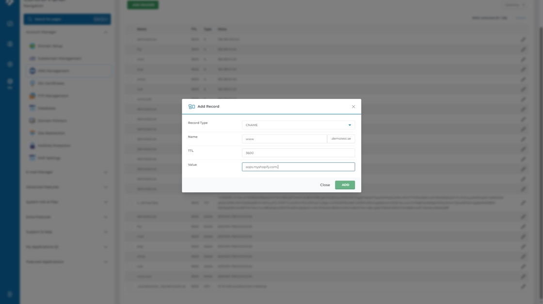Den här guiden visar hur du pekar din domän till Shopify genom att uppdatera DNS-inställningarna i DirectAdmin med de uppgifter du fått från Shopify.