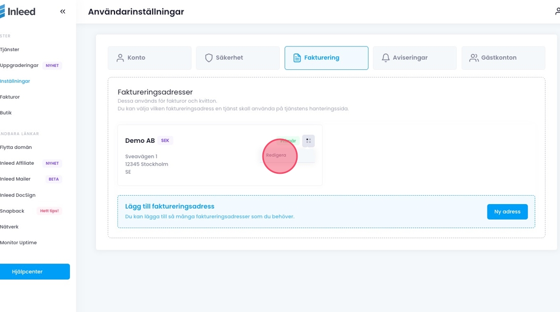 5Klicka på "Redigera" för att ändra dina faktureringsuppgifter.