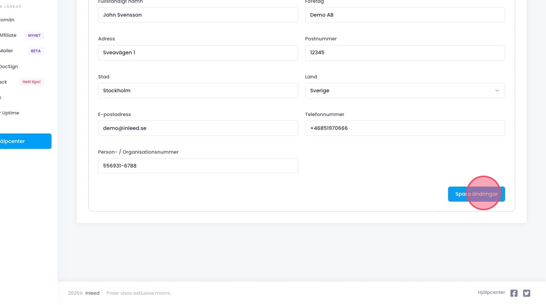 Den här guiden visar hur du uppdaterar din faktureringsinformation i Inleeds kundzon.