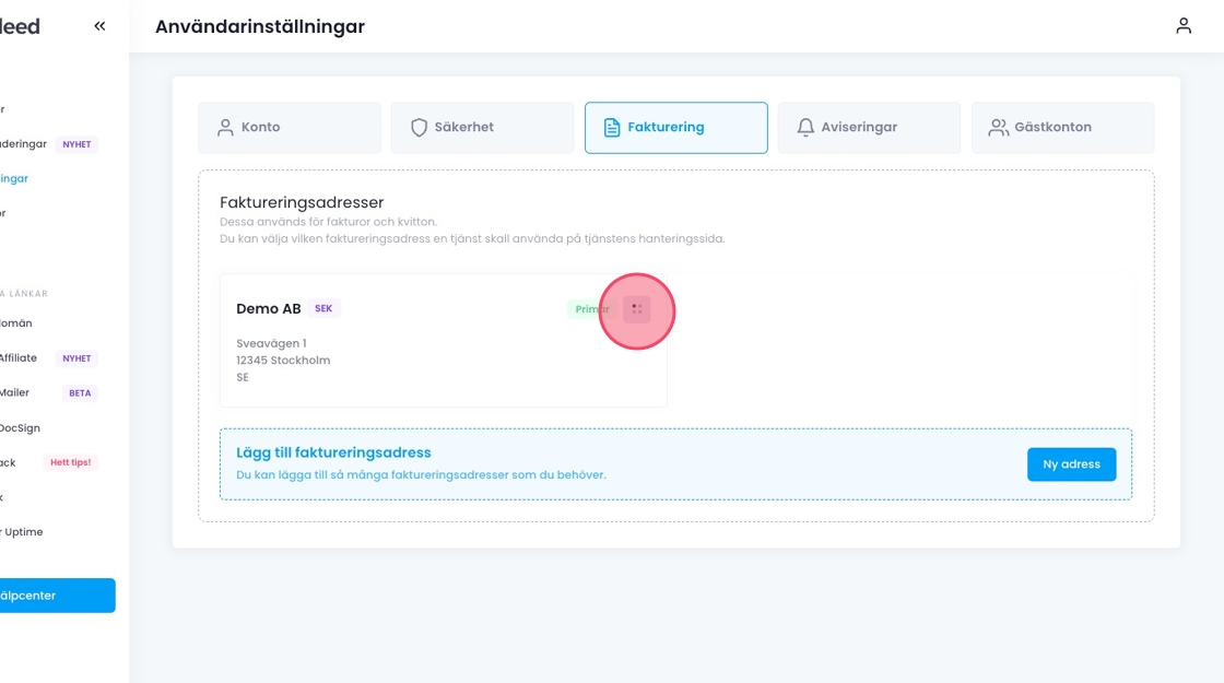 3Välj "Fakturering" för att komma till faktureringsinställningarna.