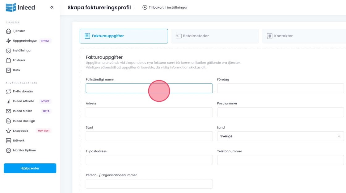 Den här guiden visar hur du lägger till en ny faktureringsadress i din kundzon hos Inleed.