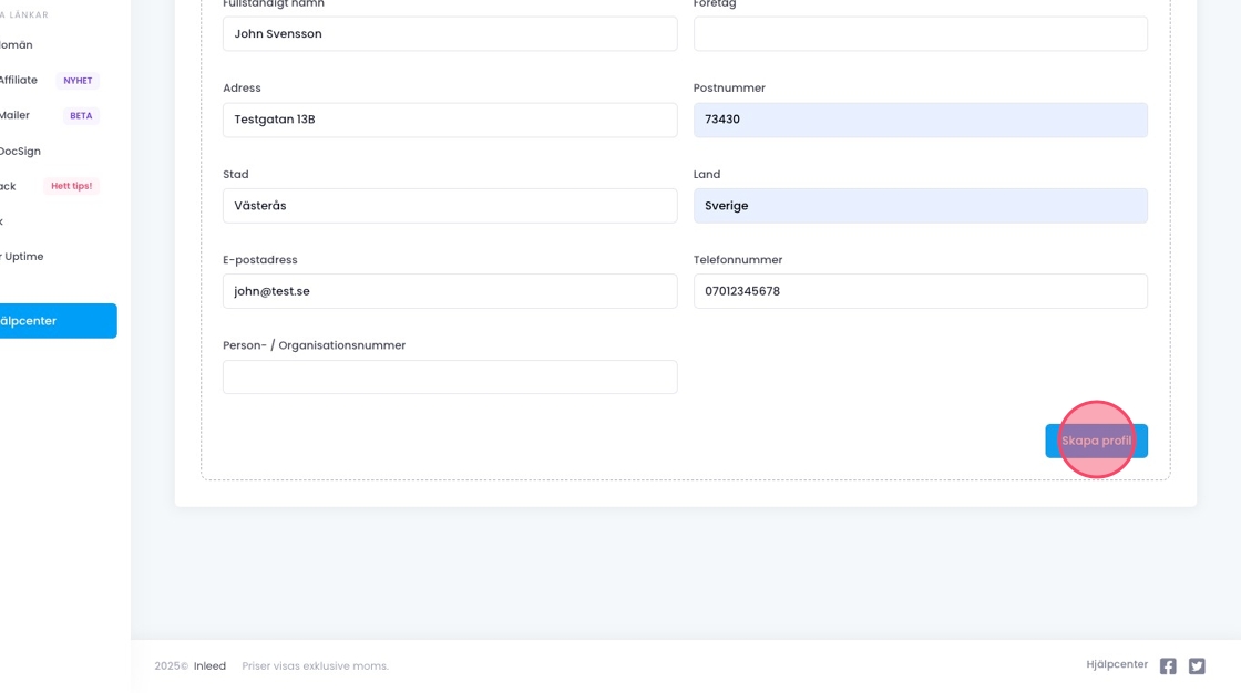 6Klicka på "Skapa profil" för att spara den nya faktureringsadressen.
