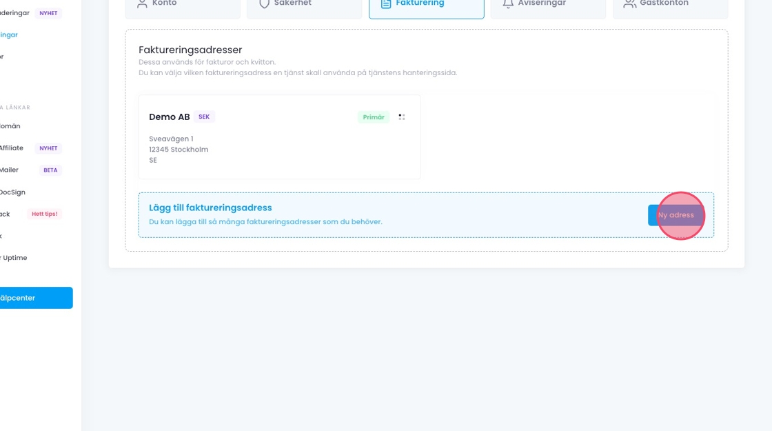 4Klicka på "Ny adress" för att lägga till en ny faktureringsadress.