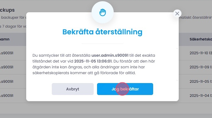 Läs igenom meddelandet som dyker upp och slutför återställningen genom att klicka på "Jag bekräftar".