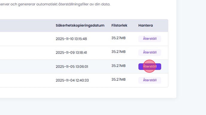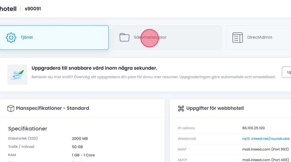 Den här guiden visar hur du återställer hela ditt webbhotellkonto från en backup om du har ett av våra Baspaket (Standard/Special), inklusive e-post och filer.