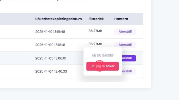 Bekräfta genom att klicka på "Ja, jag är säker".