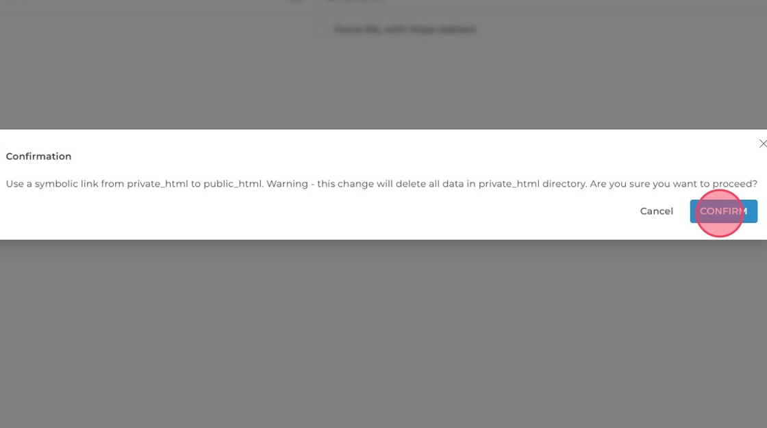 Kontrollera att private_html inte innehåller filer du vill spara. Klicka därefter på "Confirm" för att slutföra åtgärden.