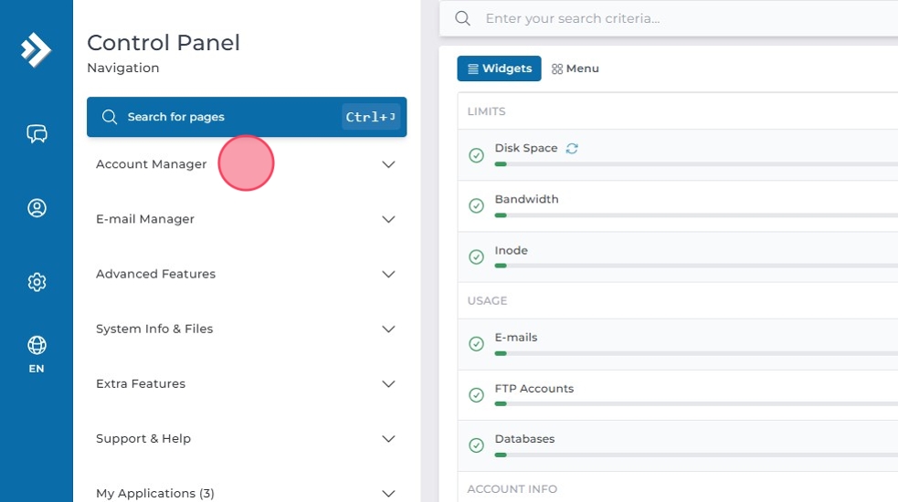 Logga in på DirectAdmin. Är du osäker på hur, se denna guide.