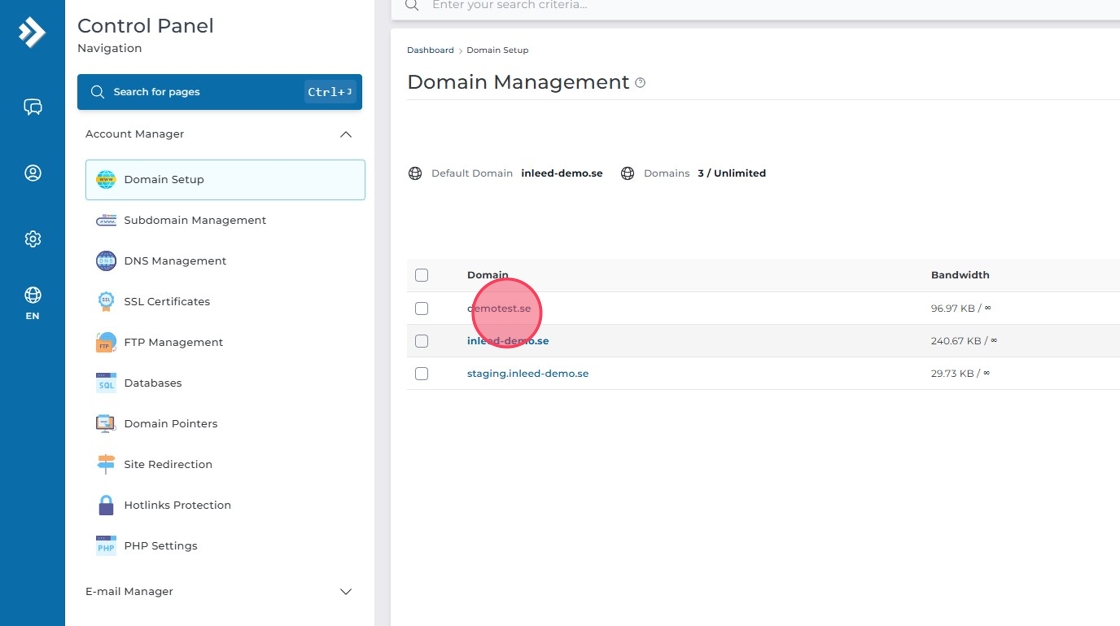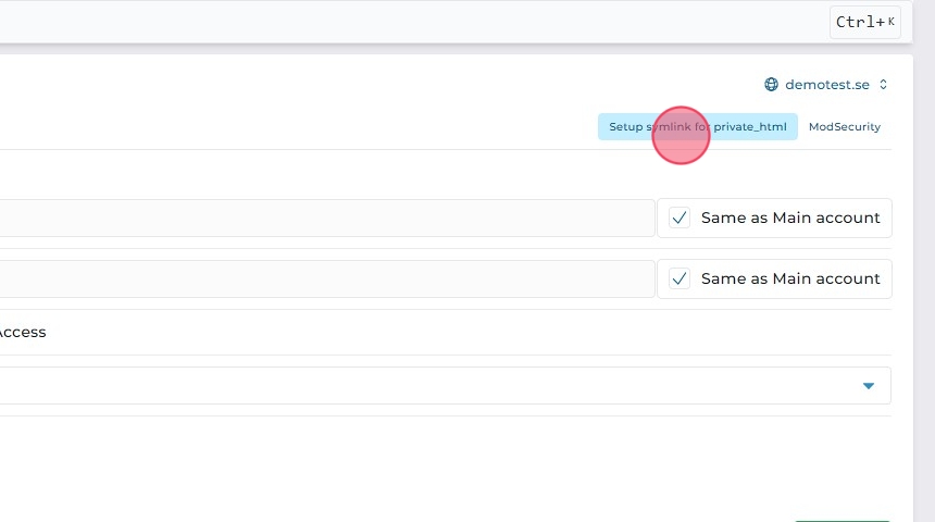 Denna guide visar hur du återskapar en symlänk mellan private_html och public_html för en domän i DirectAdmin. Observera att allt innehåll i private_html raderas vid denna åtgärd, så säkerhetskopiera viktiga filer innan du fortsätter.