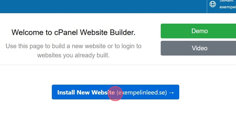 5Klicka på "Install New Website (exempelinleed.se) →" för att påbörja installationen.