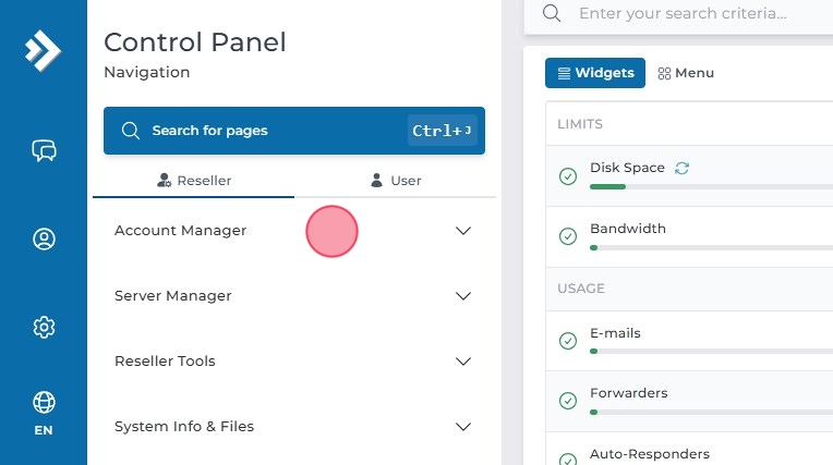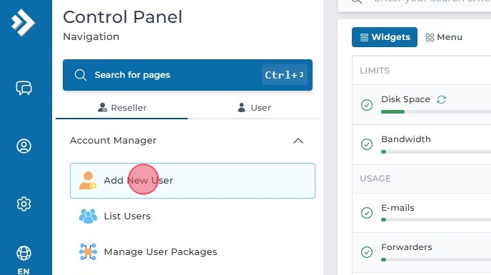 Denna guide visar hur du som återförsäljare skapar nya användarkonton i DirectAdmin och anpassar deras inställningar efter kundens behov.