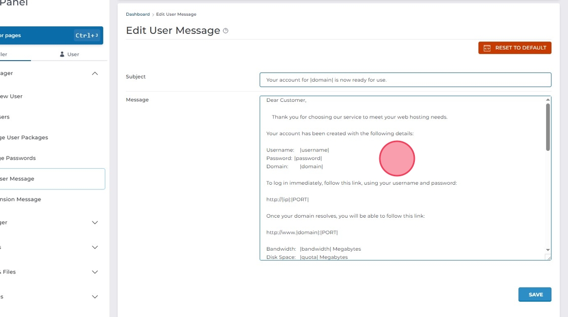 Den här guiden visar hur du ändrar och sparar välkomstmeddelandet som skickas till dina nya användare i DirectAdmin.