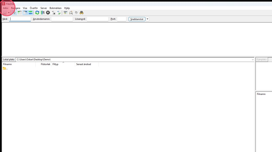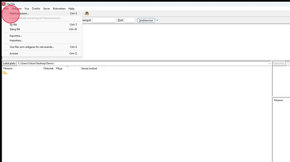 Den här guiden visar hur du steg för steg skapar en ny SFTP-anslutning i FileZilla för att säkert ansluta till ditt webbhotellskonto med DirectAdmin-huvudkontot.