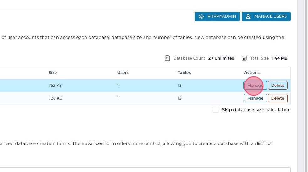 5Klicka på "Manage" för den användare vars lösenord du vill byta.