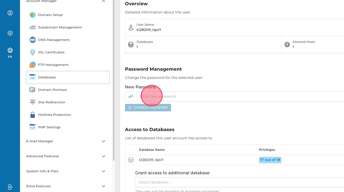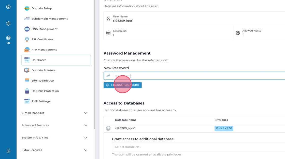 Denna guide visar hur du byter lösenord för en specifik databas i DirectAdmin.