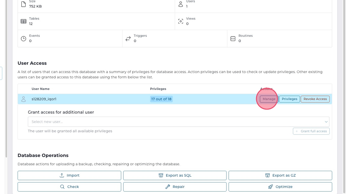 Glöm inte att uppdatera lösenordet i eventuella anslutande applikationer, t.ex. webbplatser eller system som använder databasen.8Bekräfta att lösenordsbytet har genomförts.