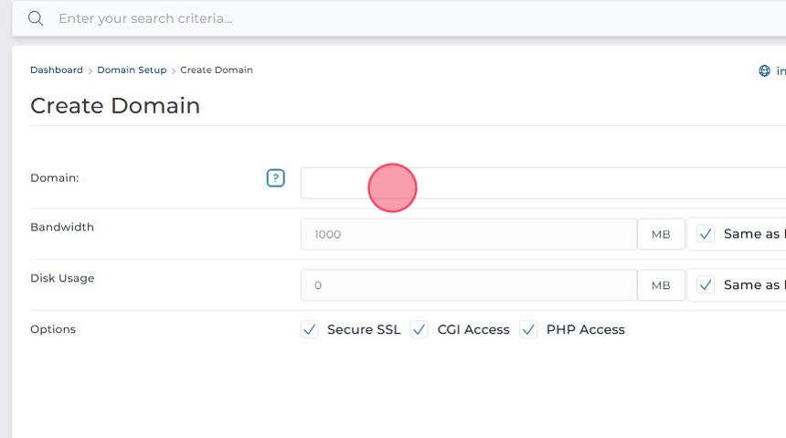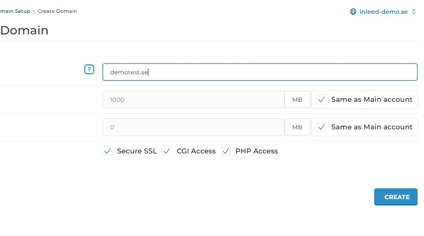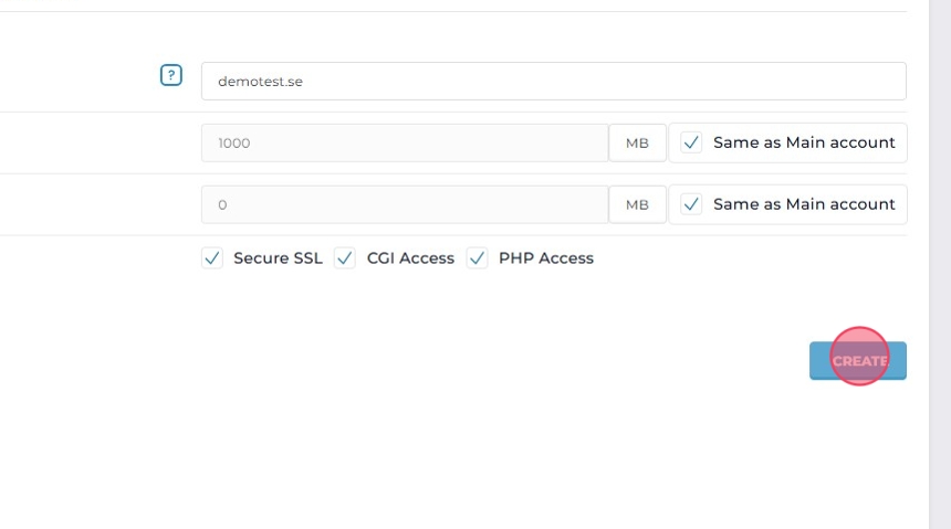 7Klicka på "Create" för att slutföra tillägget av domänen.