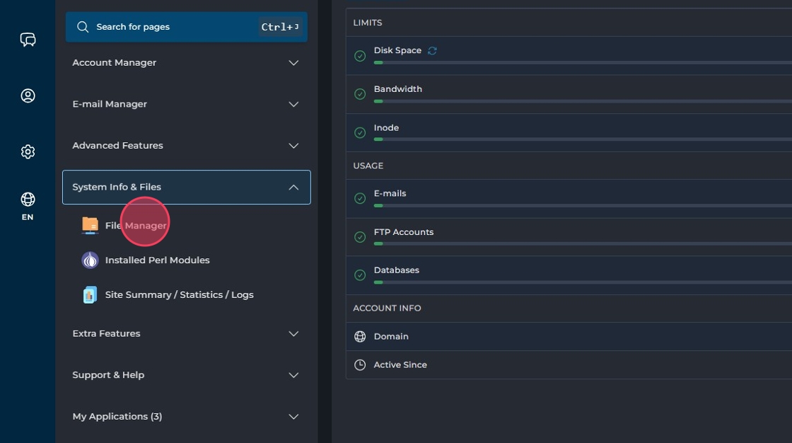 Den här guiden visar hur du snabbt kontrollerar storleken på kataloger i DirectAdmin via File Manager.