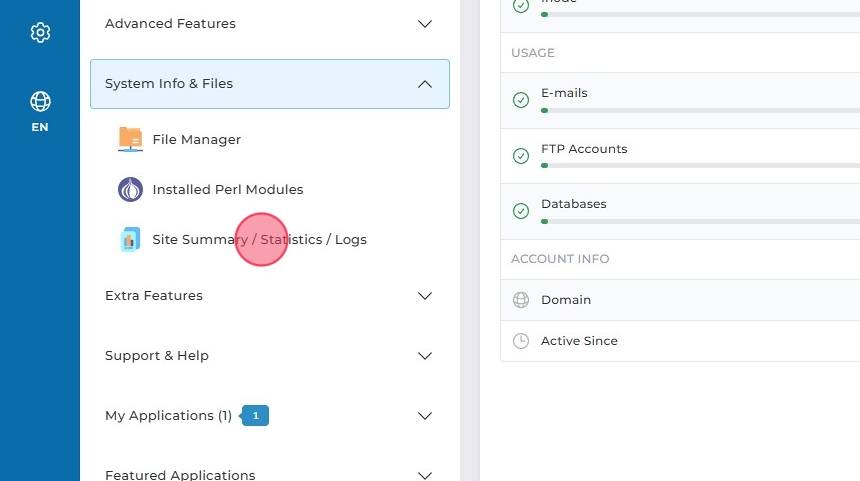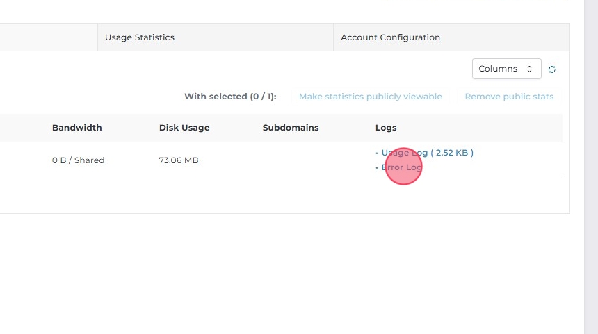 Klicka på "Error Log" för att visa fel-loggen för din webbplats.