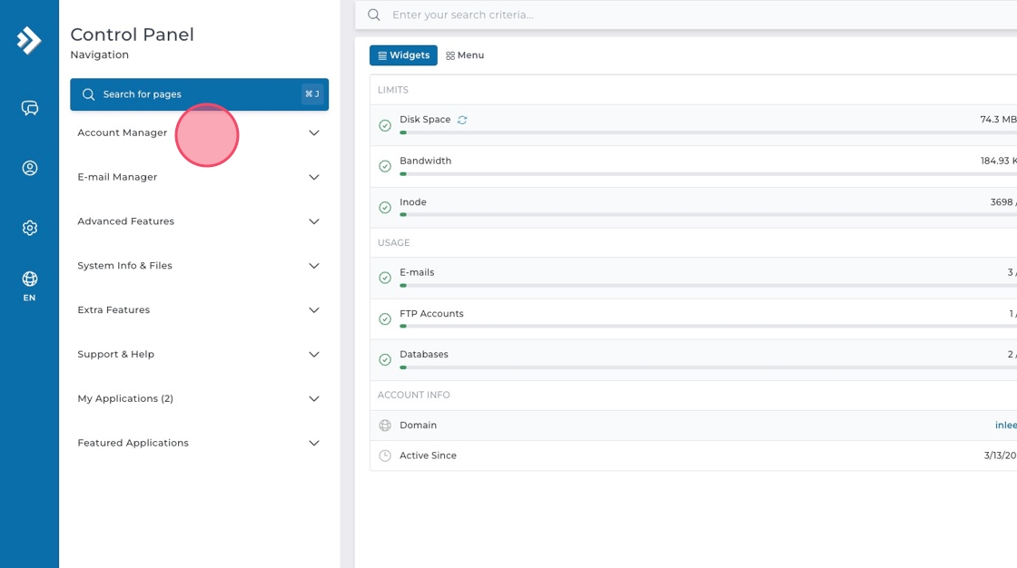 2Klicka på "Account Manager" i menyn.