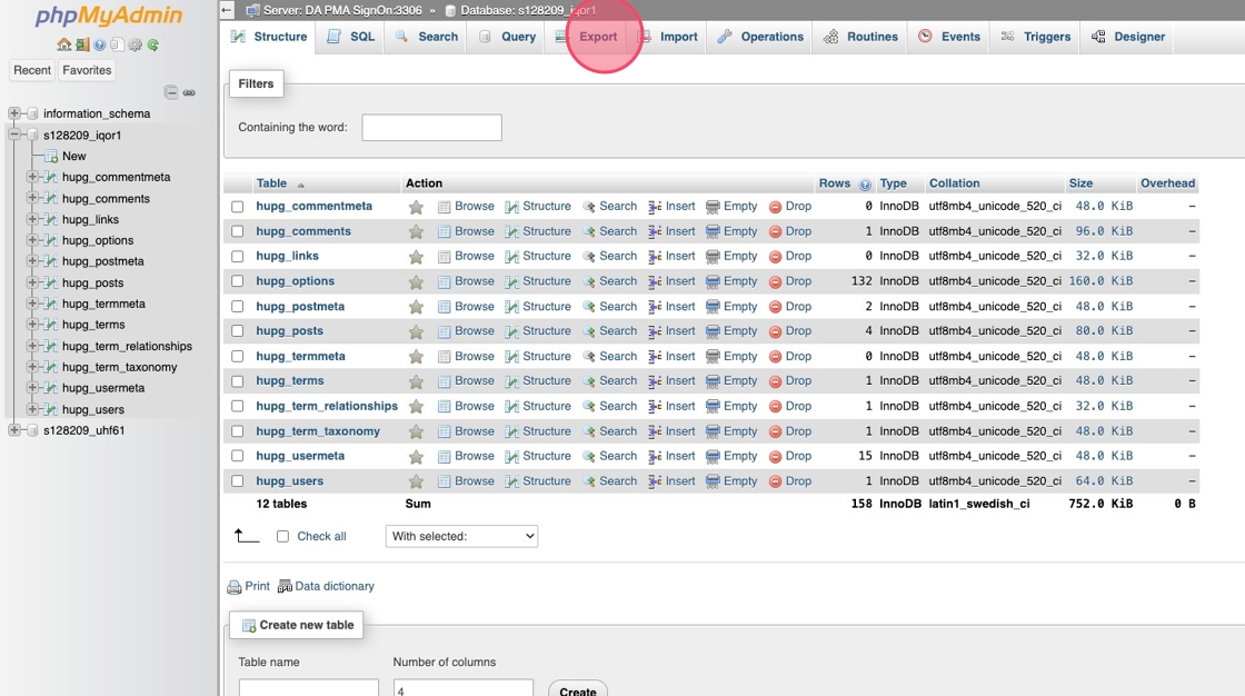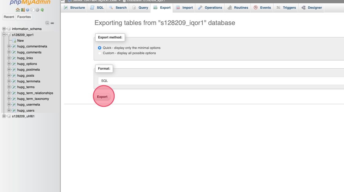 Hur du exporterar en databas via phpMyAdmin
