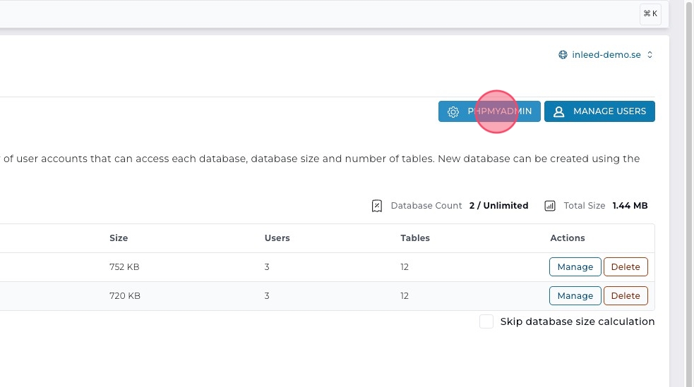 4Klicka på "phpMyAdmin" för att öppna databashanteraren.