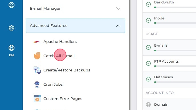 Den här guiden visar hur du aktiverar och konfigurerar Catch All-mail i DirectAdmin för att fånga upp e-post som skickas till ogiltiga eller felstavade adresser på din domän.
