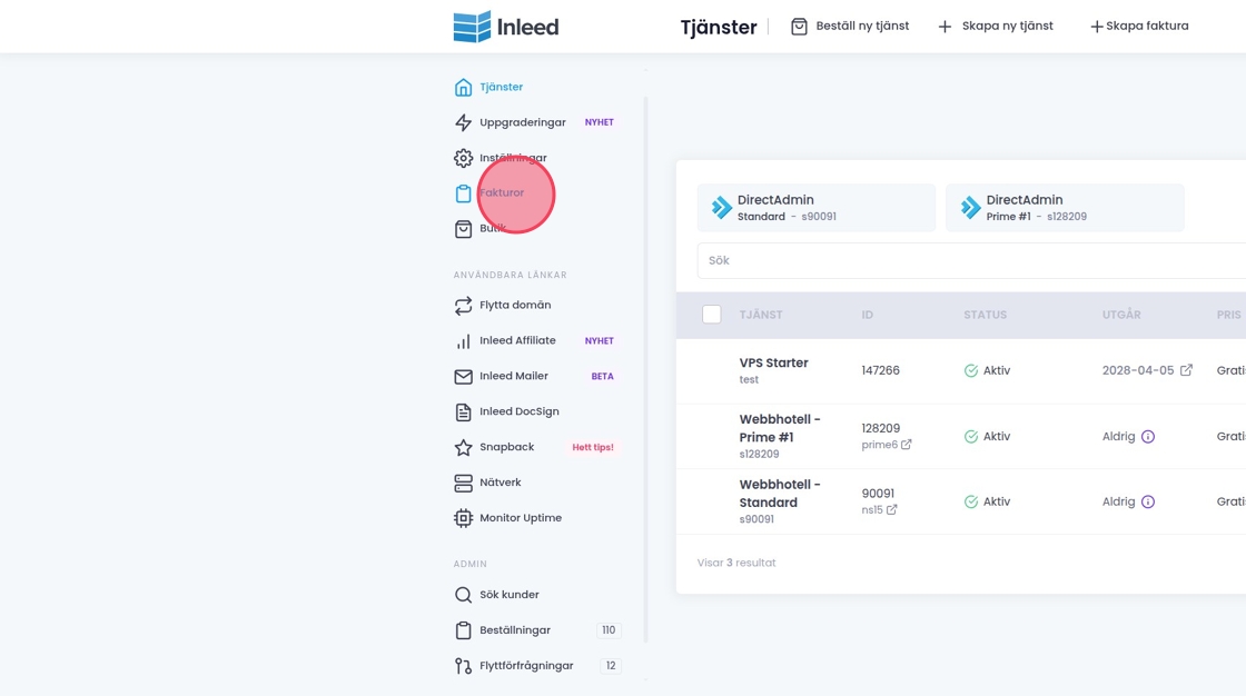 2Klicka på "Fakturor" i menyn.