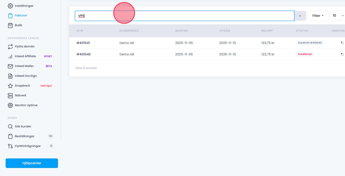 Den här guiden visar hur du söker efter fakturor i kundzonen, till exempel via produktnamn, OCR-nummer eller företagsnamn.