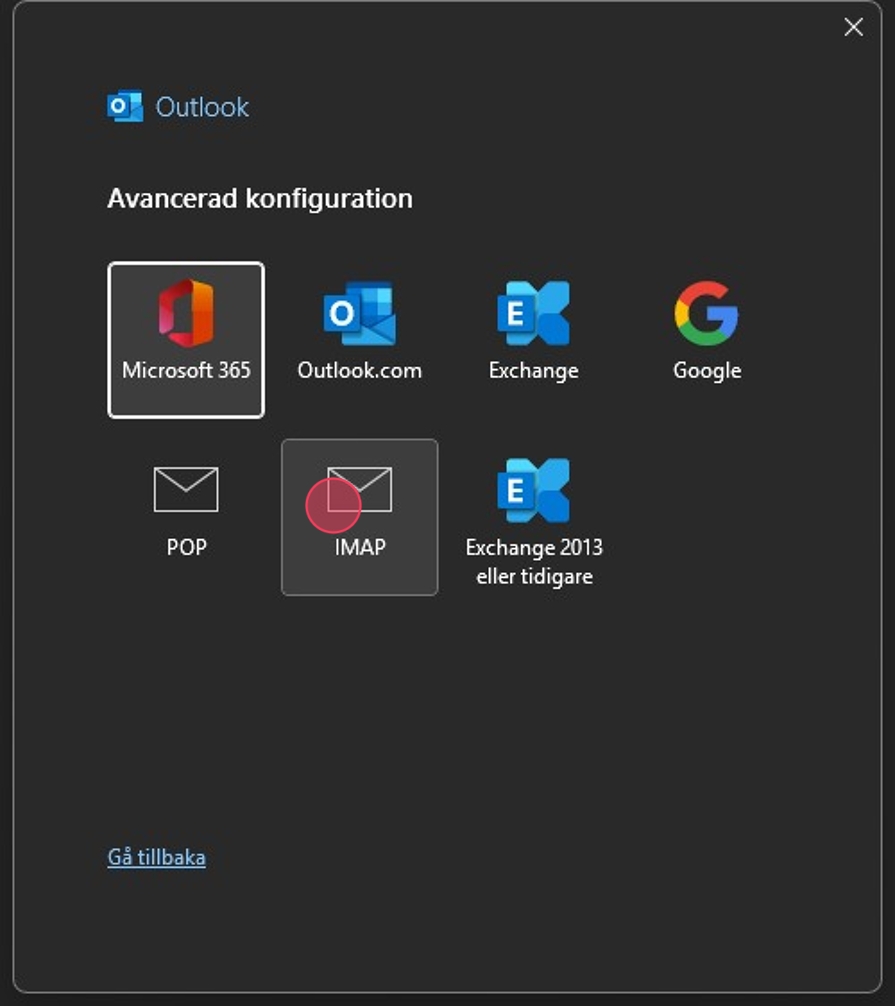 3Välj IMAP.