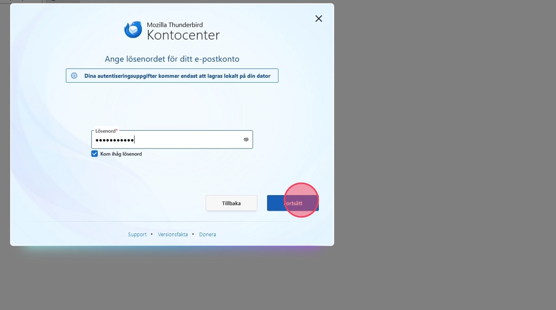Ange lösenordet för den e-postadress du lägger till och klicka på "Fortsätt".
