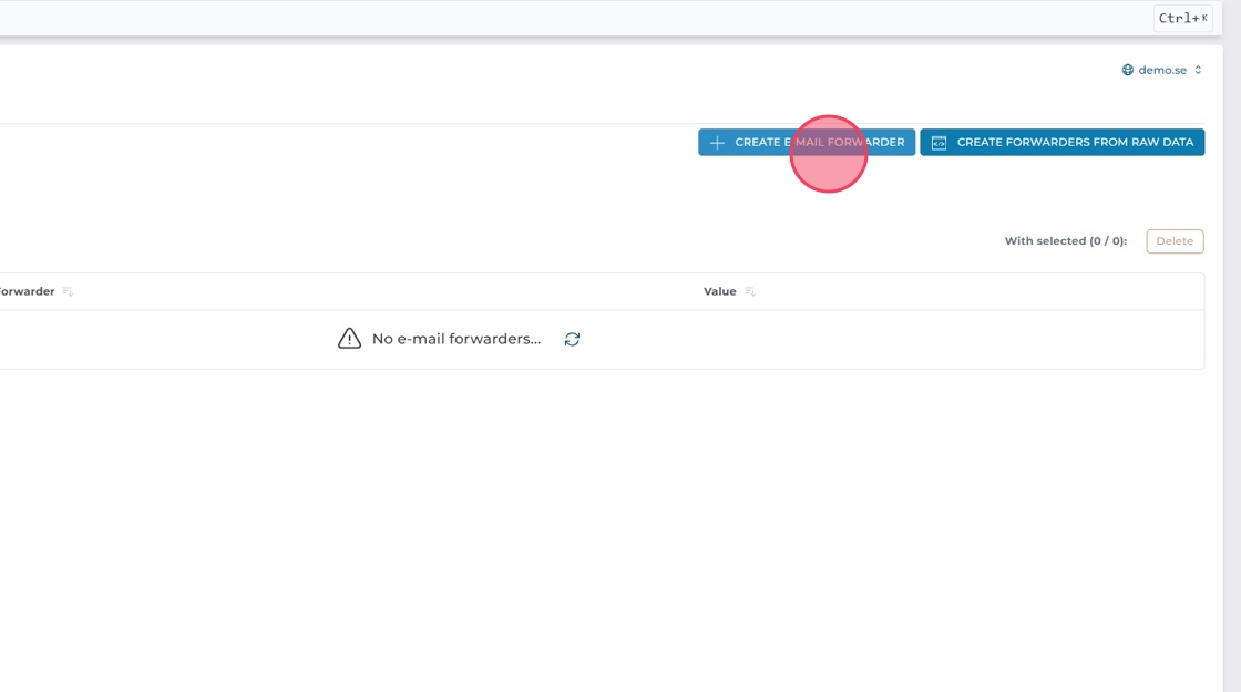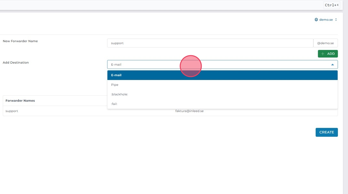Klicka på "Create E-mail Forwarder".