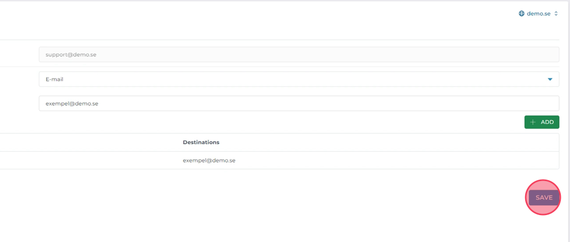 Ange mottagaradressen dit e-post ska vidarebefordras och klicka sedan på "Save".