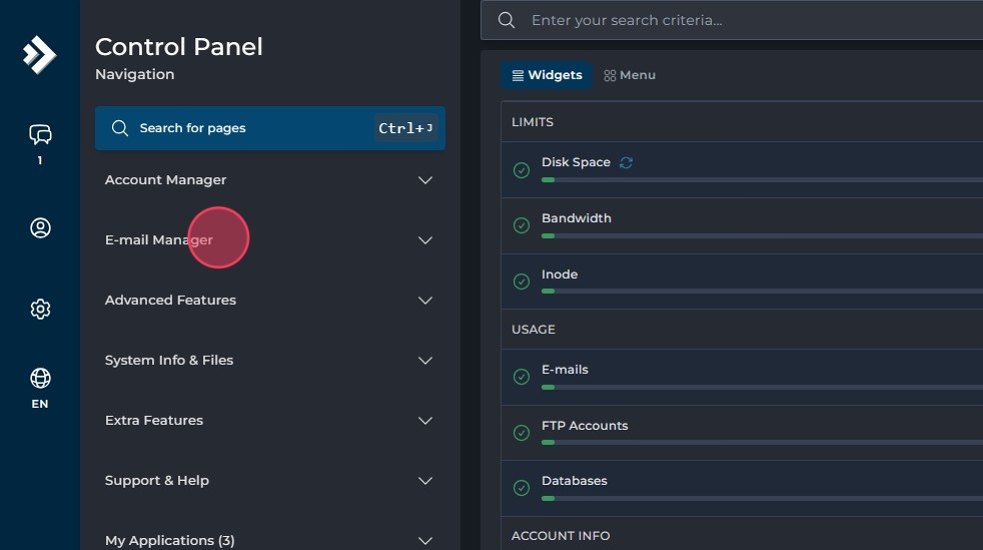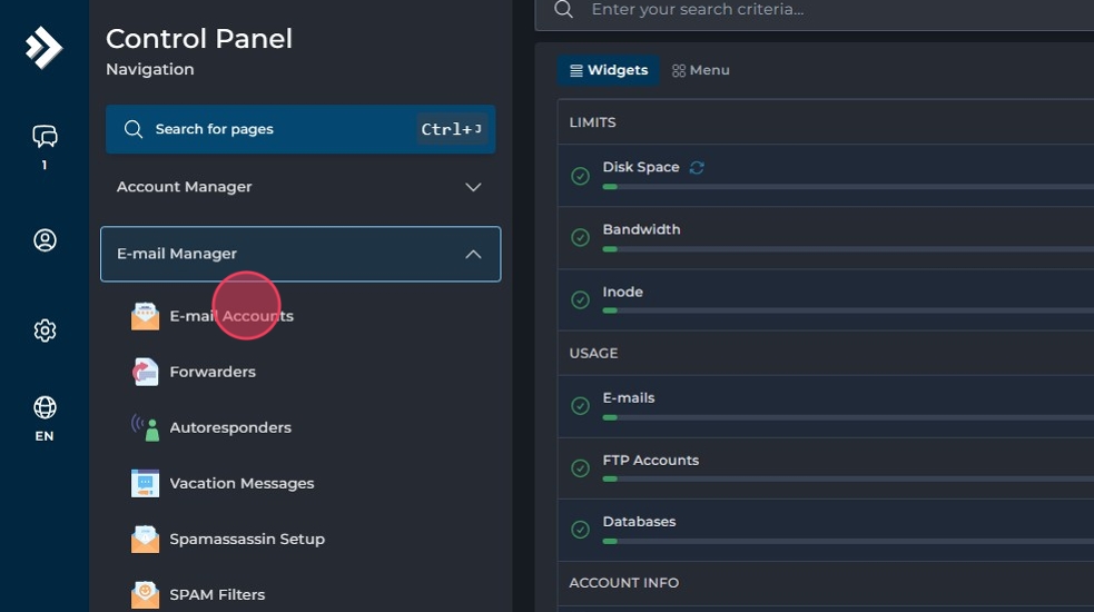 Den här guiden visar hur du snabbt och enkelt skapar ett nytt e-postkonto i DirectAdmin för din domän.
