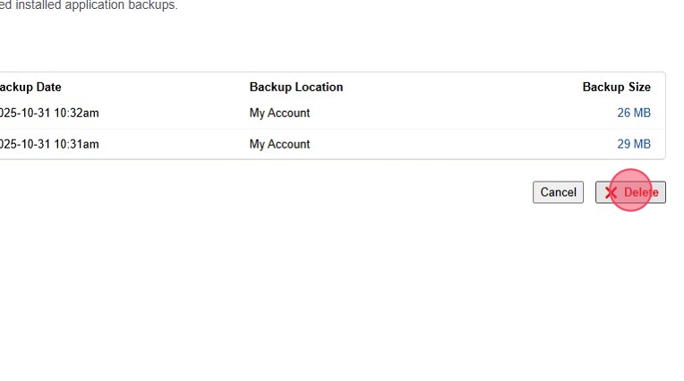 Den här guiden visar hur du tar bort säkerhetskopior i Installatron i DirectAdmin.