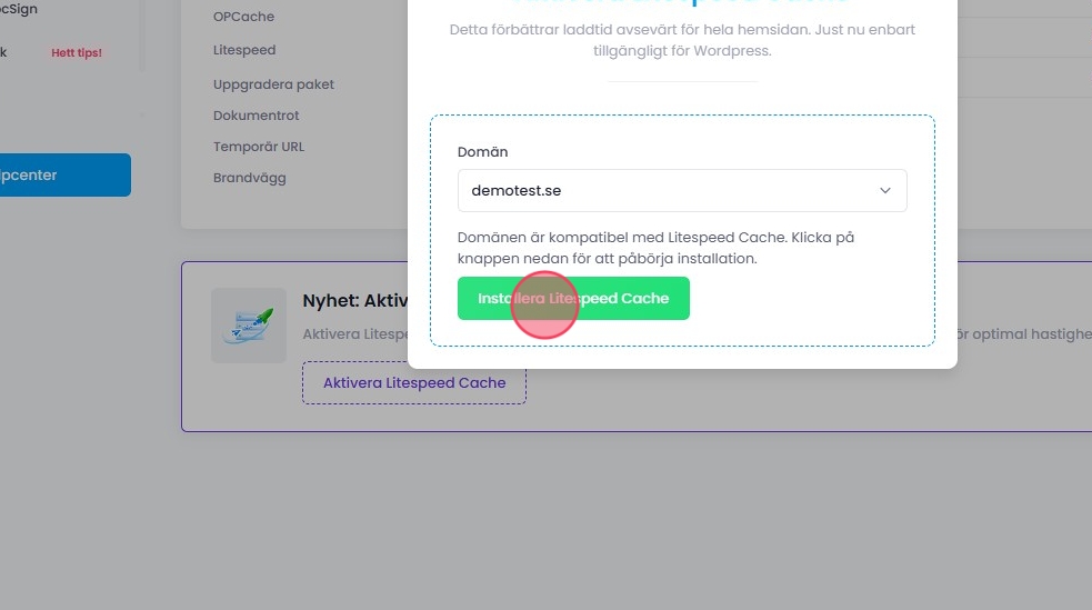 5Klicka på "Installera Litespeed Cache". Vänta tills installationen är klar – du får ett meddelande när processen är slutförd.