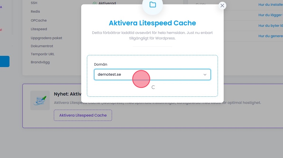 Guiden gäller endast webbhotell som hostas via Prime eller UltraDen här guiden visar hur du aktiverar Litespeed Cache för din webbplats för att förbättra laddningstider och prestanda.