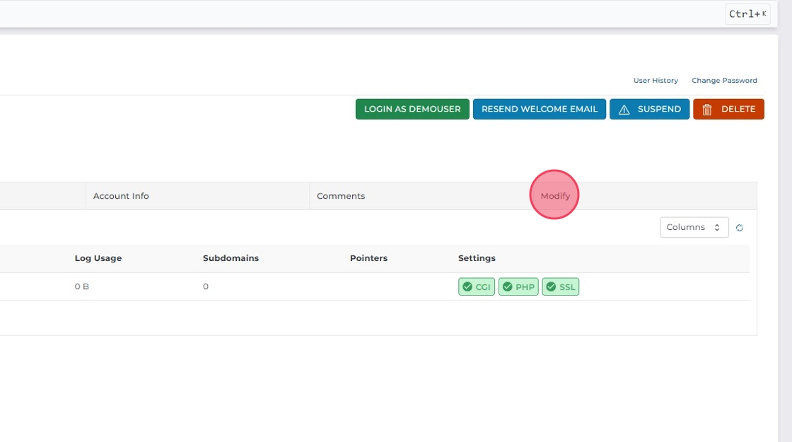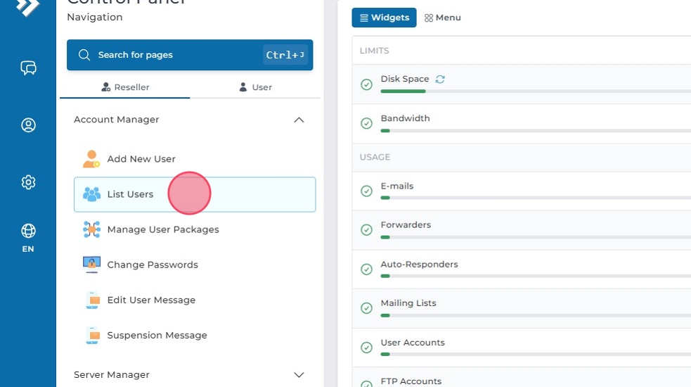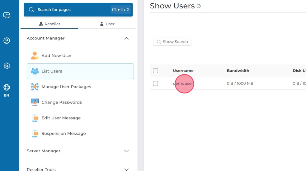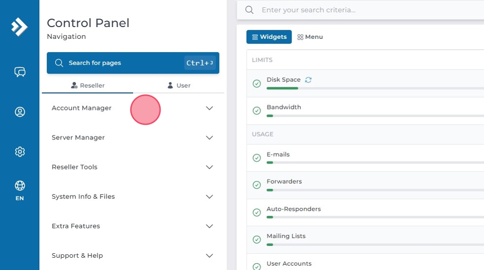 Den här guiden visar hur du ändrar användarinställningar, som tema (skin), för en användare via Account Manager i DirectAdmin.