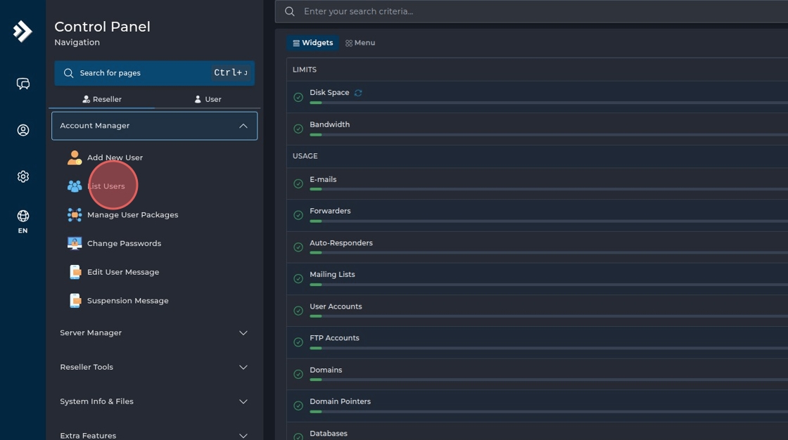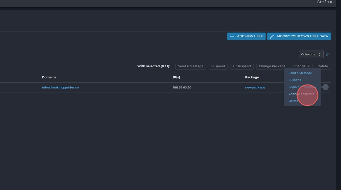 Så här byter du lösenord för en användare i Account Manager via DirectAdmin.