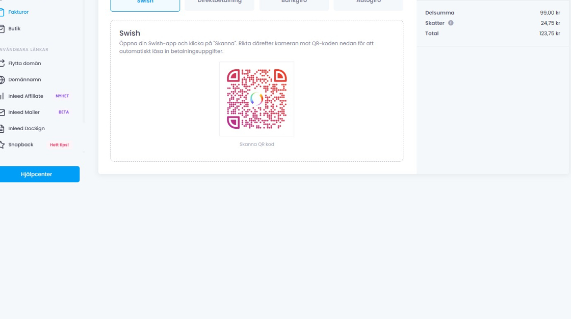Välj betalningsmetod för överlåtelseavgiften: Swish, Direktbetalning (kort), Bankgiro, Autogiro eller Prepaid. När betalningen är mottagen fortsätter processen och både nuvarande och nya ägaren får ett e-postmeddelande om överlåtelsen.