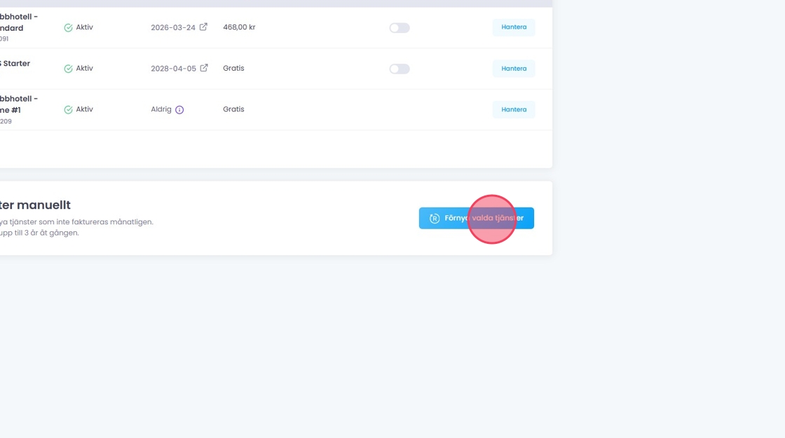5Klicka på "Förnya valda tjänster" för att gå vidare till betalning.